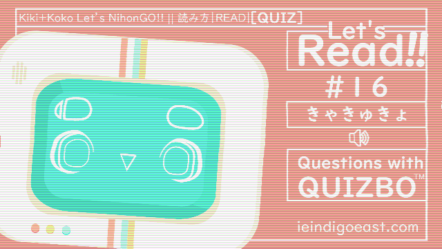 Maybe you’re not quite sure about how each of these are read… But, that’s okay as well! If you’re not quite sure of the matching moji (文字, characters), you can still guess to study/revise. Or, if you want something a bit more concrete, be sure to visit the Kiki+Koko: Let’s NihonGO!! blog or online site where we have a whole lesson for you on how to read from あいうえお to– well, the current lesson! QUIZBO™ is there to help you read as well!