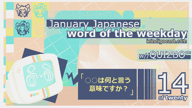 HELLO! And, welcome to January Japanese Word of the Weekday presented by Kiki+Koko: Let’s NihonGO!! Online! I AM QUIZBO™! This special corner is dedicated to those who would like to get into the habit of learning something new each day to further their Japanese language learning goals one step at a time. However, it does not have to be January to decide to begin improving your life. The best day to begin working towards your goals is today! No matter if it is one sentence, one character, or one word, learning one more thing today is one more thing than you knew yesterday.