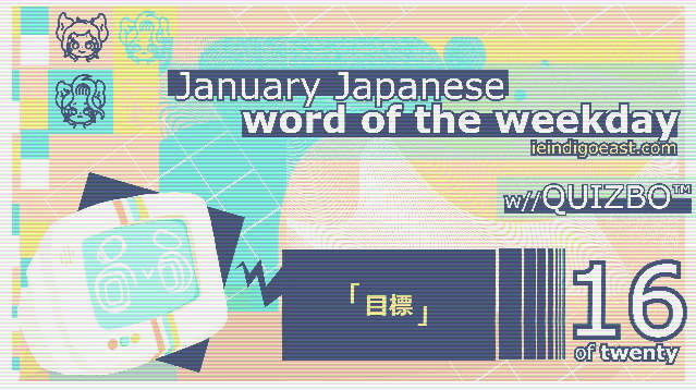 Today’s vocabulary is from January Japanese Word of the Weekday w//QUIZBO™ Lesson 16 of 20. This lesson’s word or phrase is【目標】